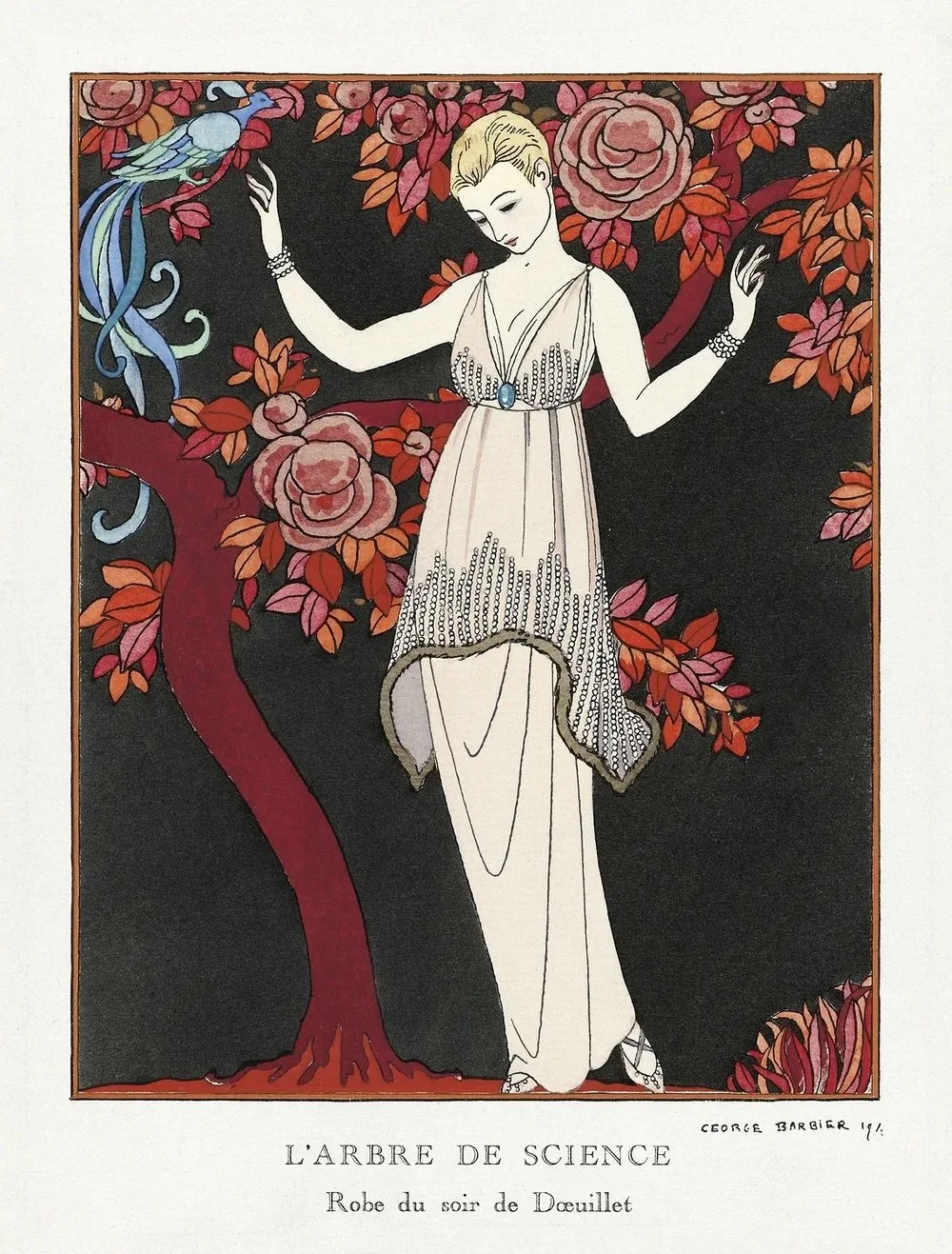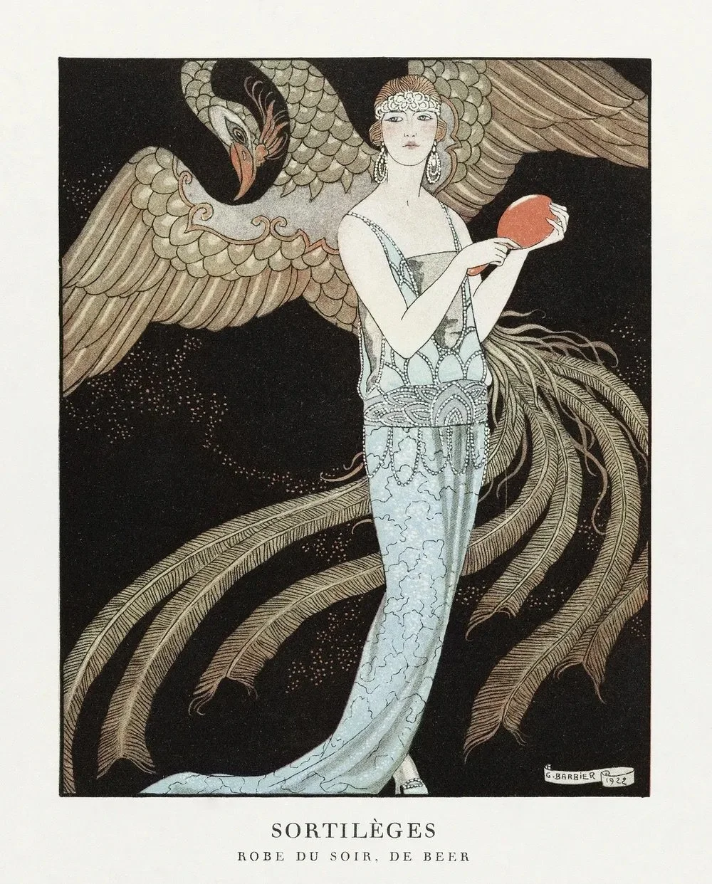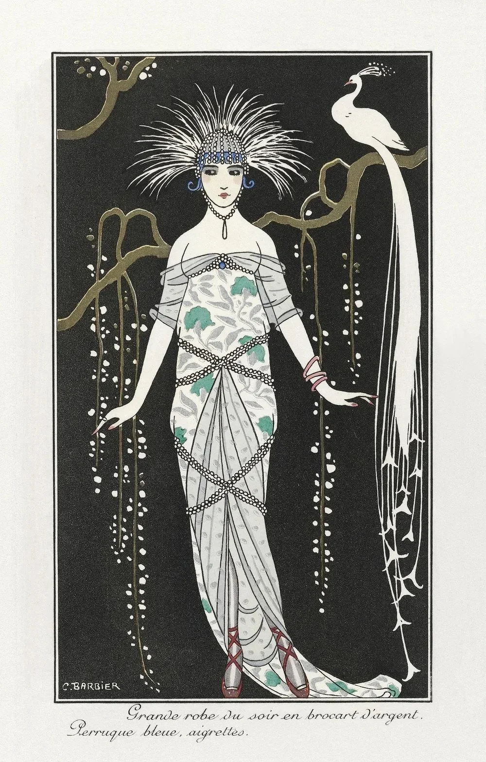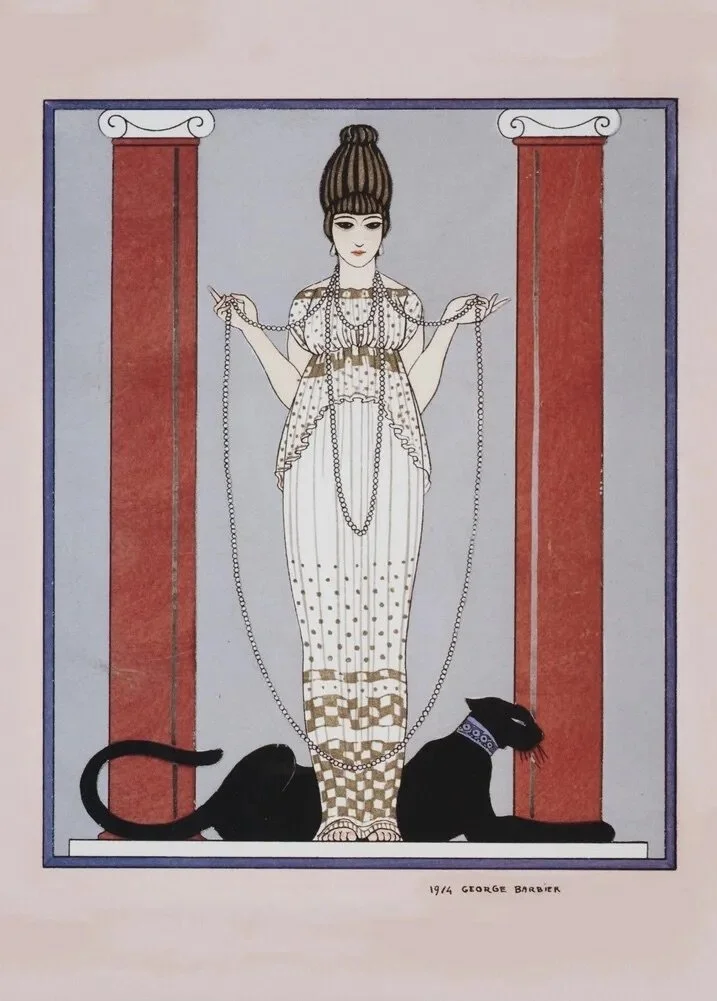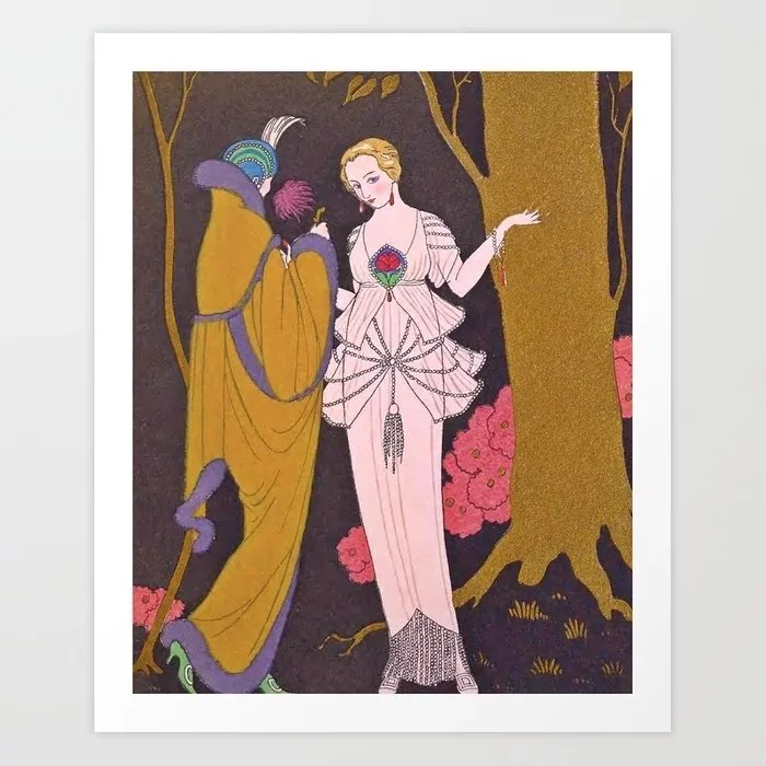 From fashionable drawings brimming with patterns to romantic depictions of gorgeous queer couples, Barbier has become a favorite of mine. Designs available as only linework, black and grey shading, with optional pops of color. Most designs will be edited to translate to a more cohesive tattoo design. I’m happy to provide my expertise here though I welcome you to make any requests or adjustments in that process with me. This is not a complete gallery of Barbier’s work, just a smattering of drawings I haven’t tattooed yet. If you find a piece that isn’t shown here and want it tattooed, send me an email!